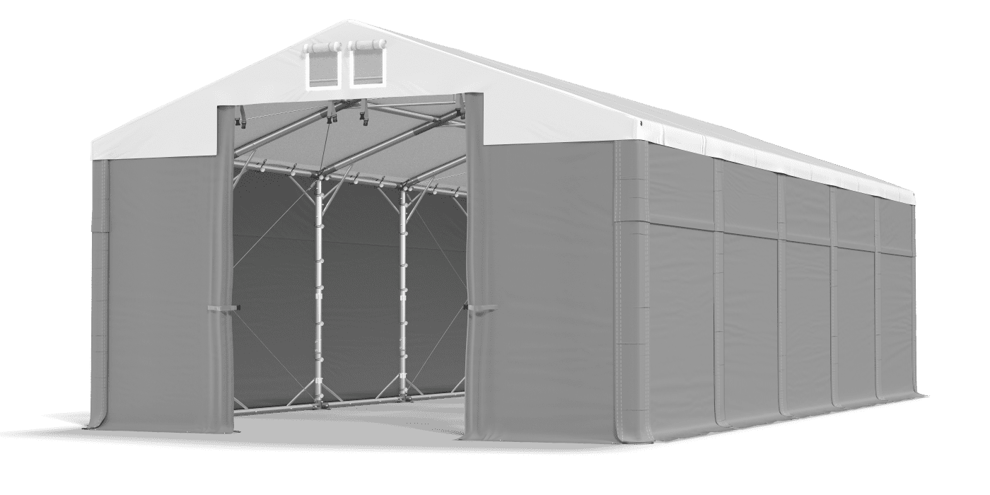 Die Struktur besteht aus einem starken und soliden Rahmen, aus verzinktem Material Rohre ca. fi 50 mm. Der Rahmen ist einfach zu montieren. Dadurch kann das Zelt neben der schnellenMontage auch sehr schnell dorthin gebracht werden, wo es benötigt wird.