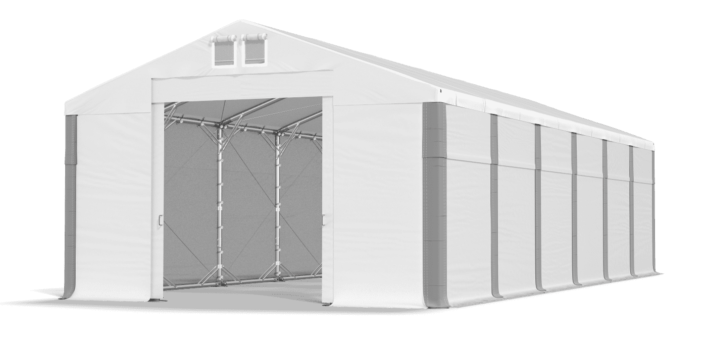 Die vollständige und langlebige Plane aus PVC bietet einen sicheren Raum für die Aufbewahrung von Waren, Garagesfahrzeugen und die Lagerung von Pflanzen. Unter dem Dach können wir Baumaterialien, Rohstoffe, Gartenmöbel und Sportgeräte aufbewahren. Die Ummantelung ist wasserdicht, dicht und gegen UV -Strahlung beständig. Die Seitenwände haften perfekt zueinander und haben keine Fenster, weshalb der Innenraum des Speicherzeltes von außen unsichtbar ist. Die Plane wurde mit einem System mit einer einfachen Änderung der Länge Multi-size ausgestattet.